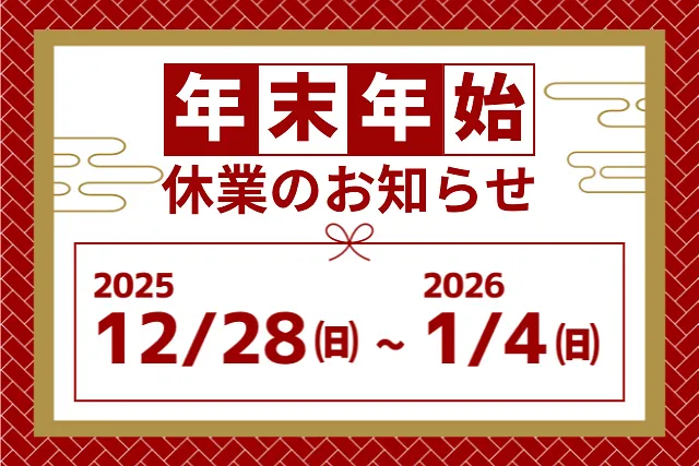 さて、誠に勝手ながら、上記の期間を「年末年始休業」とさせていただきます。
